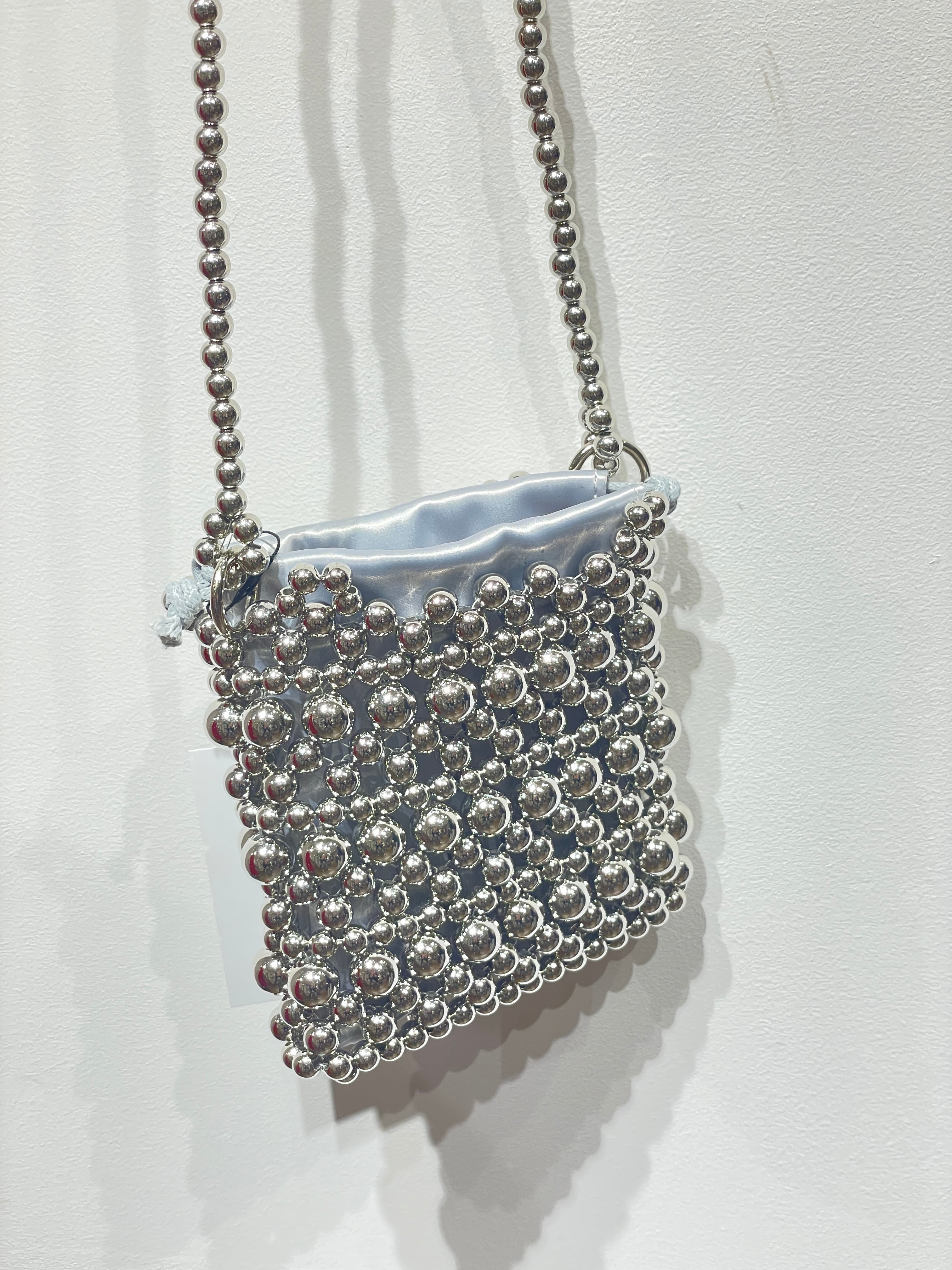 コロンと丸いボールチェーンが繋がった、小さく可愛らしいポシェット