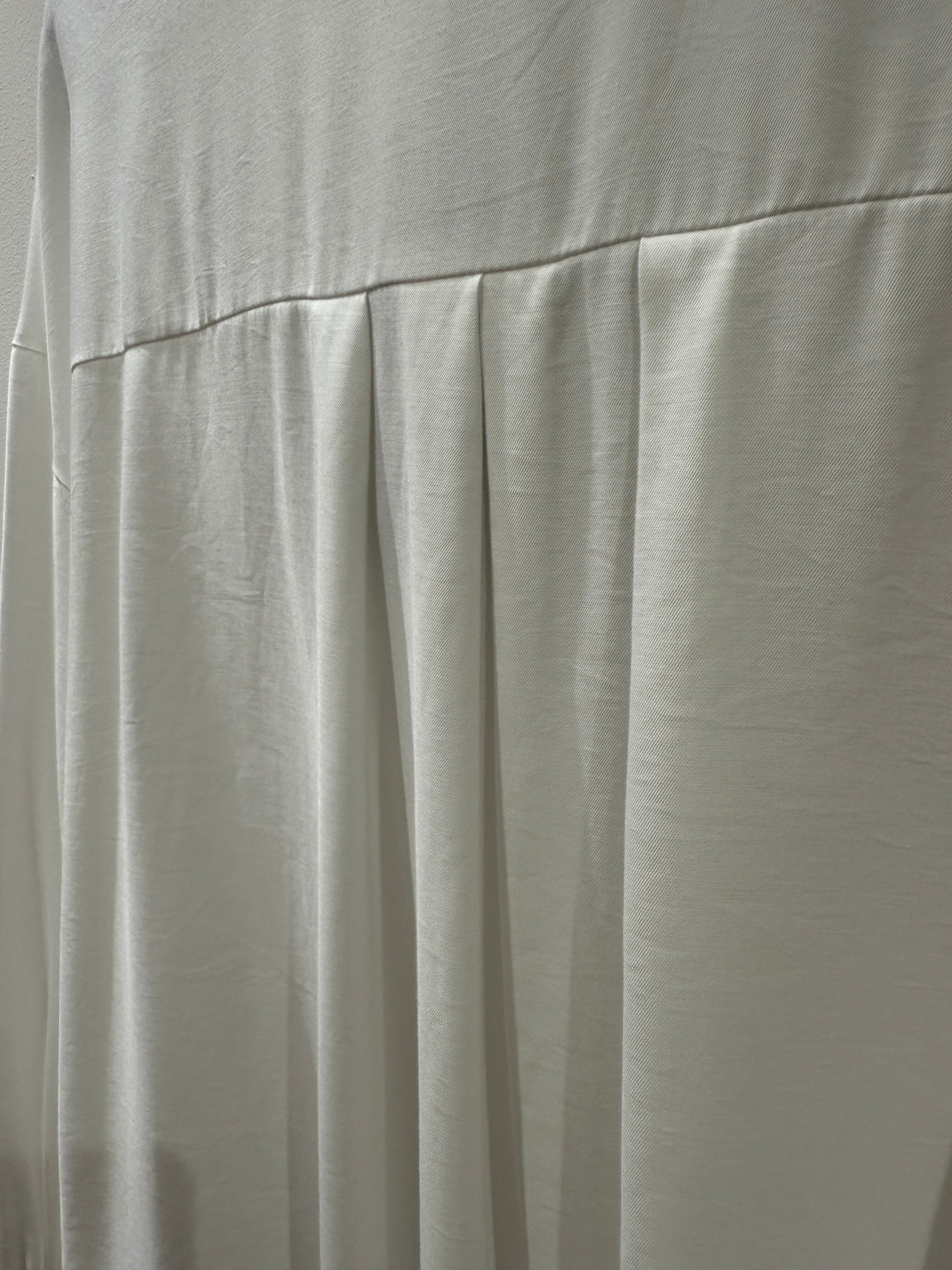 すっきりとした衿元のバンドカラーが、きれいな表情を生んでいます