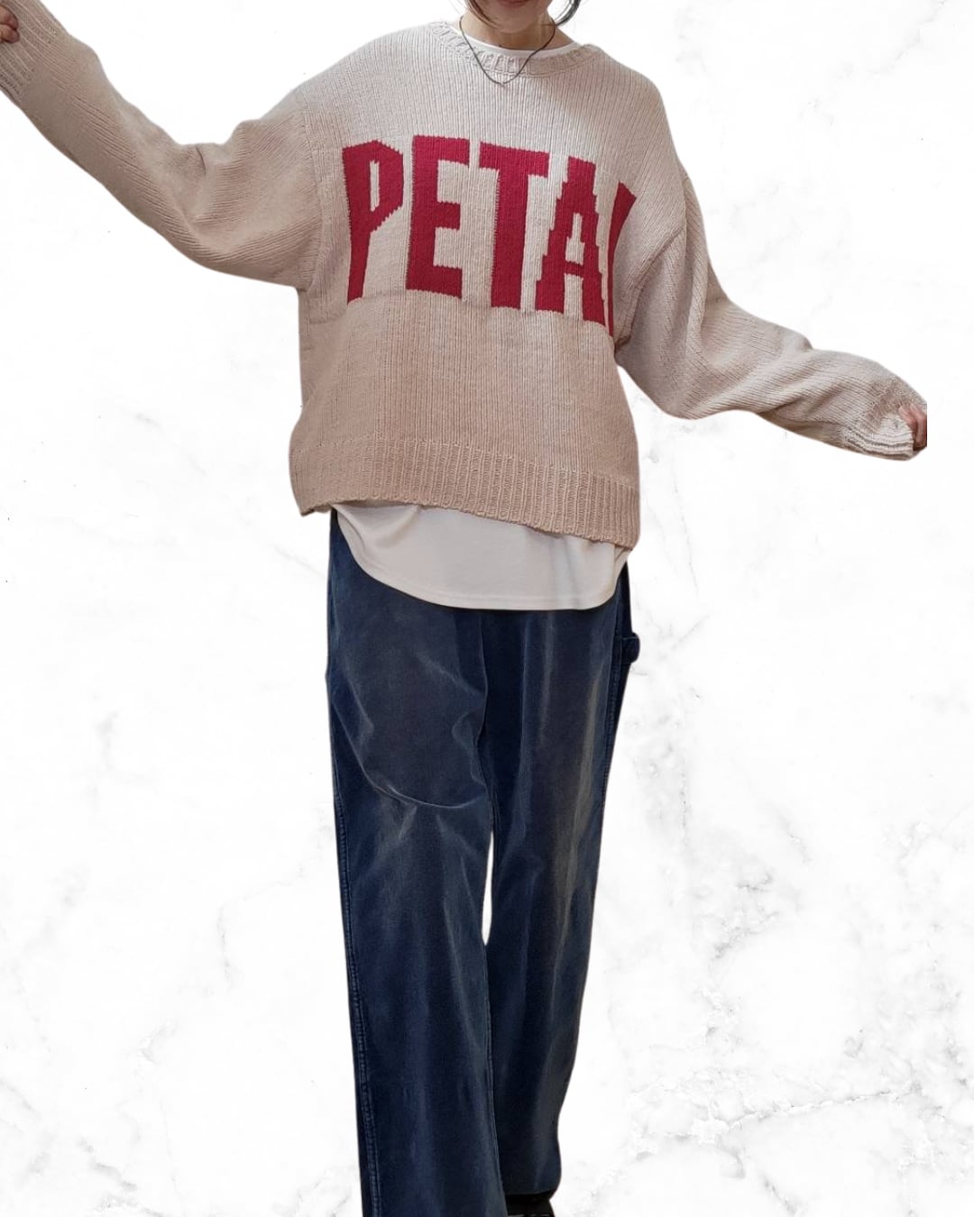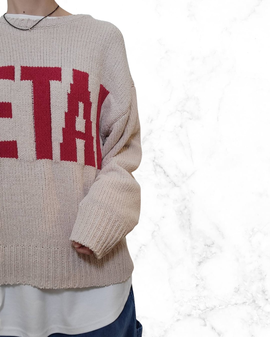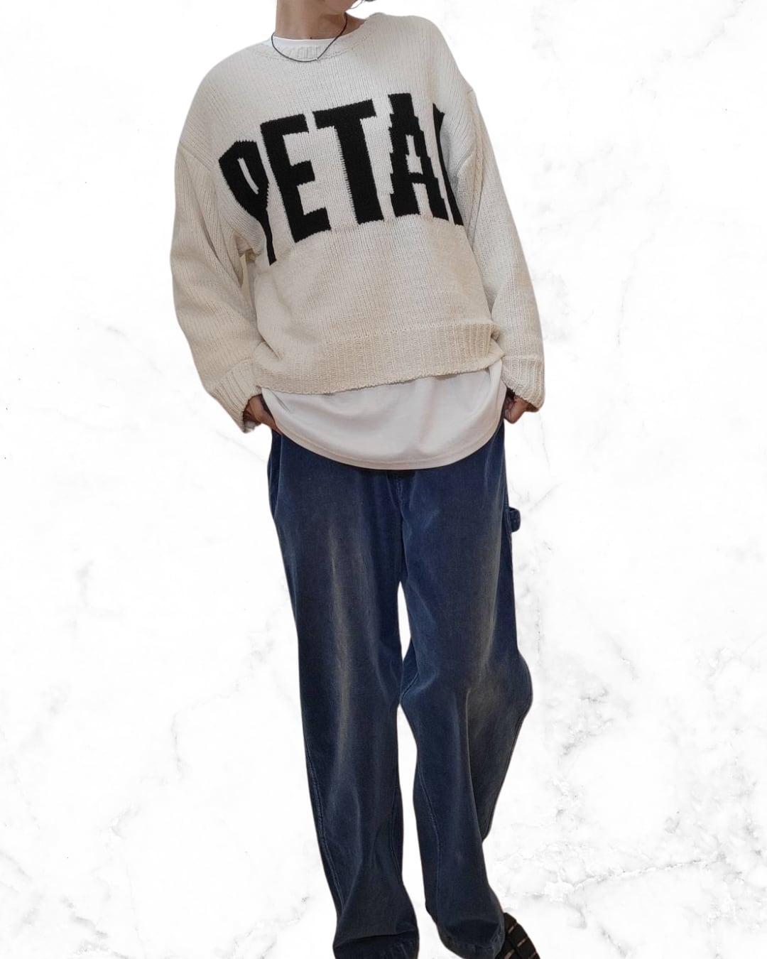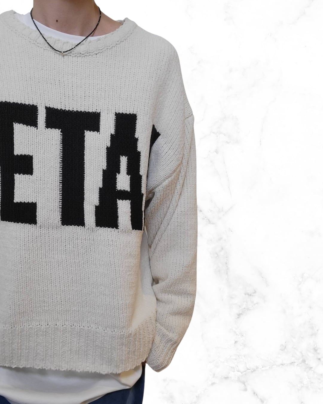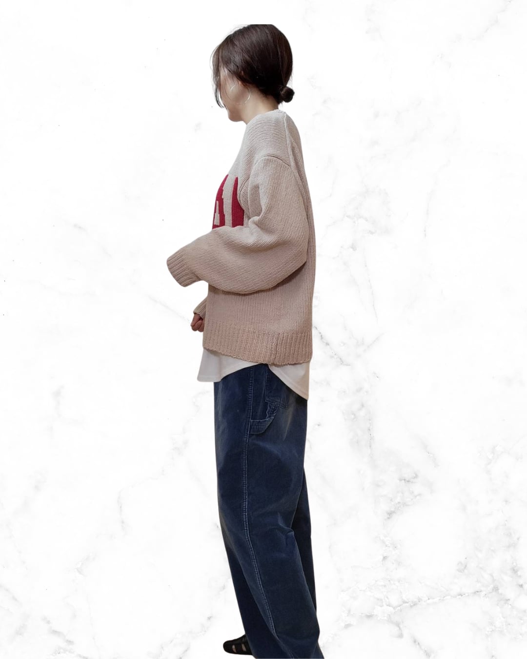 モールのような太めの糸でざっくり編んだ、見た目にも暖かなロゴニット