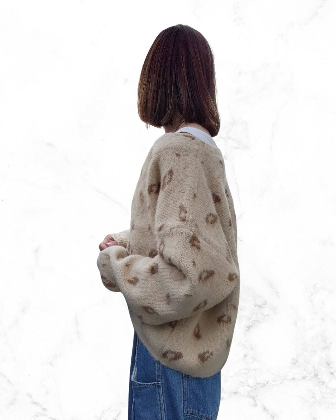 起毛レオパードJQニットカーディガン(9454-073DP) アイボリー CHIGNON