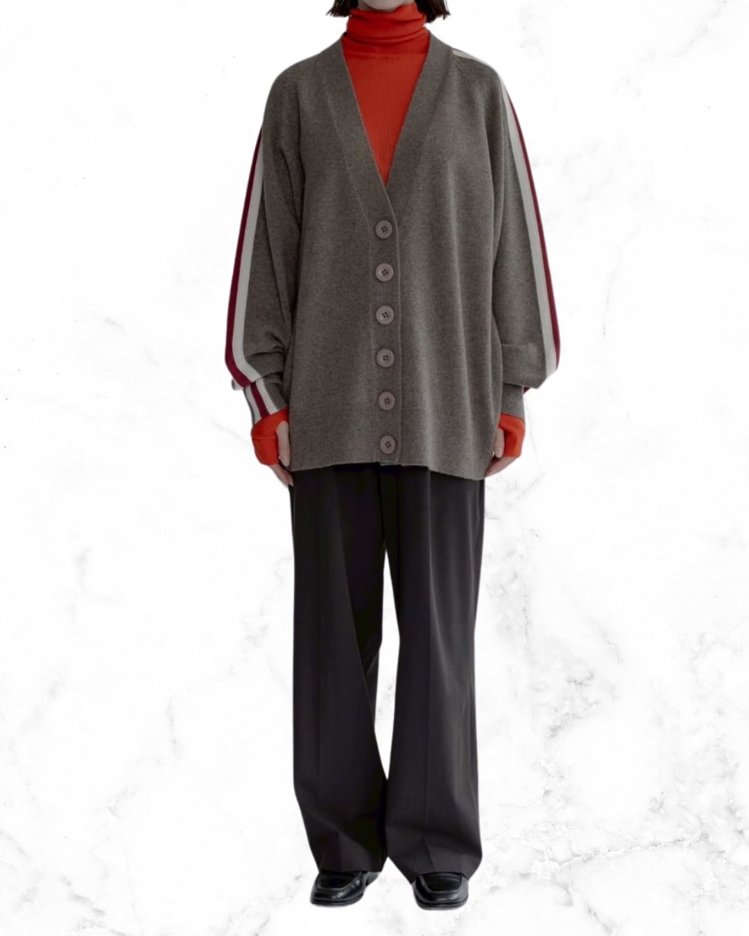 長めの丈でヒップも隠れる安心の長さのカーディガン
