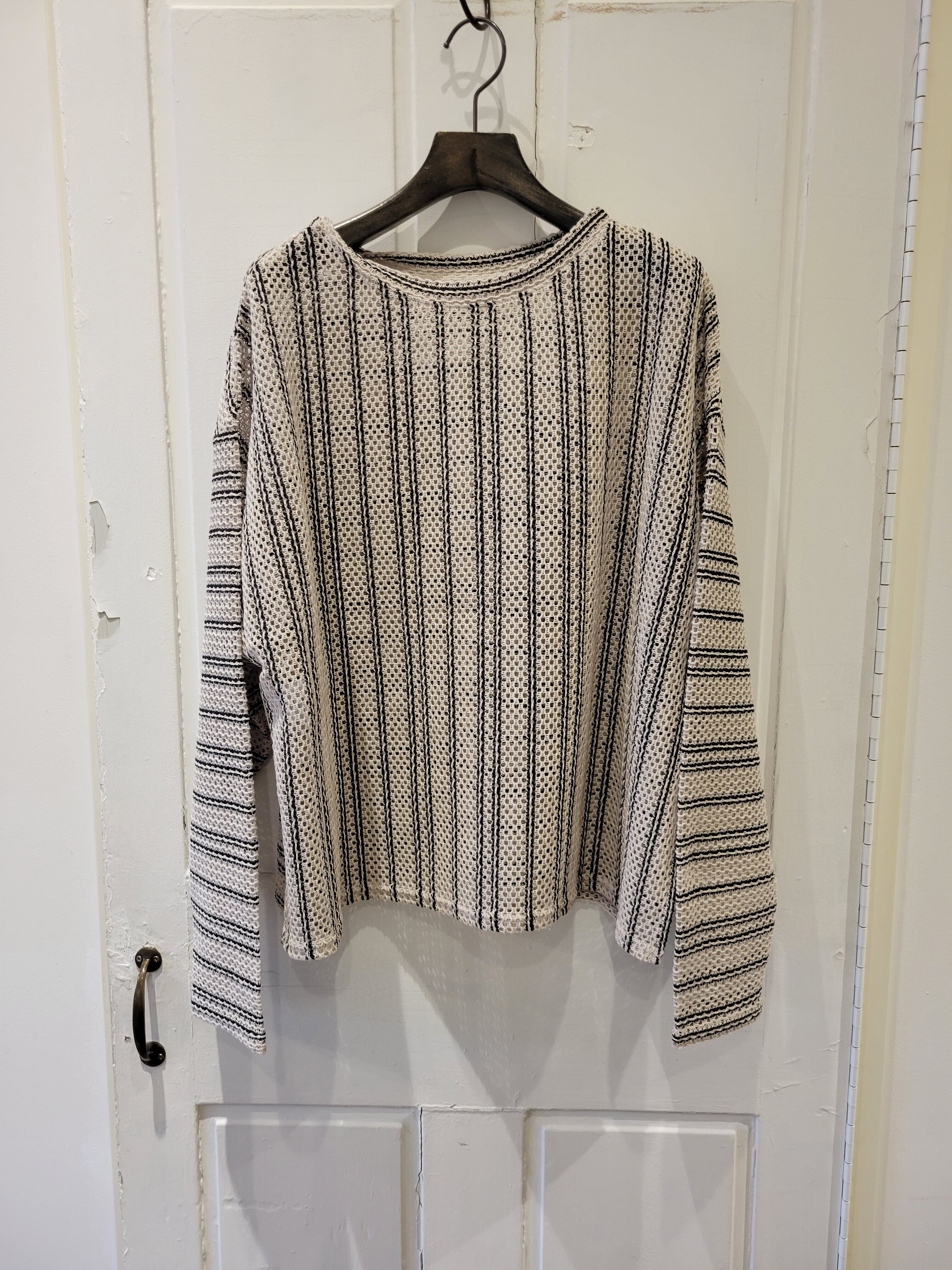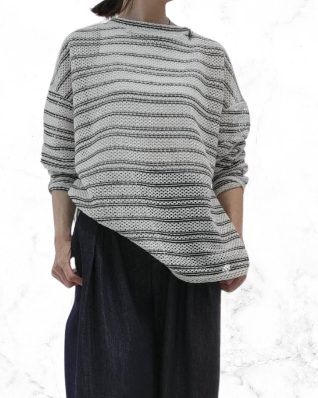 前後で着用頂ける、2WAY仕様のシアーボーダートップスです。