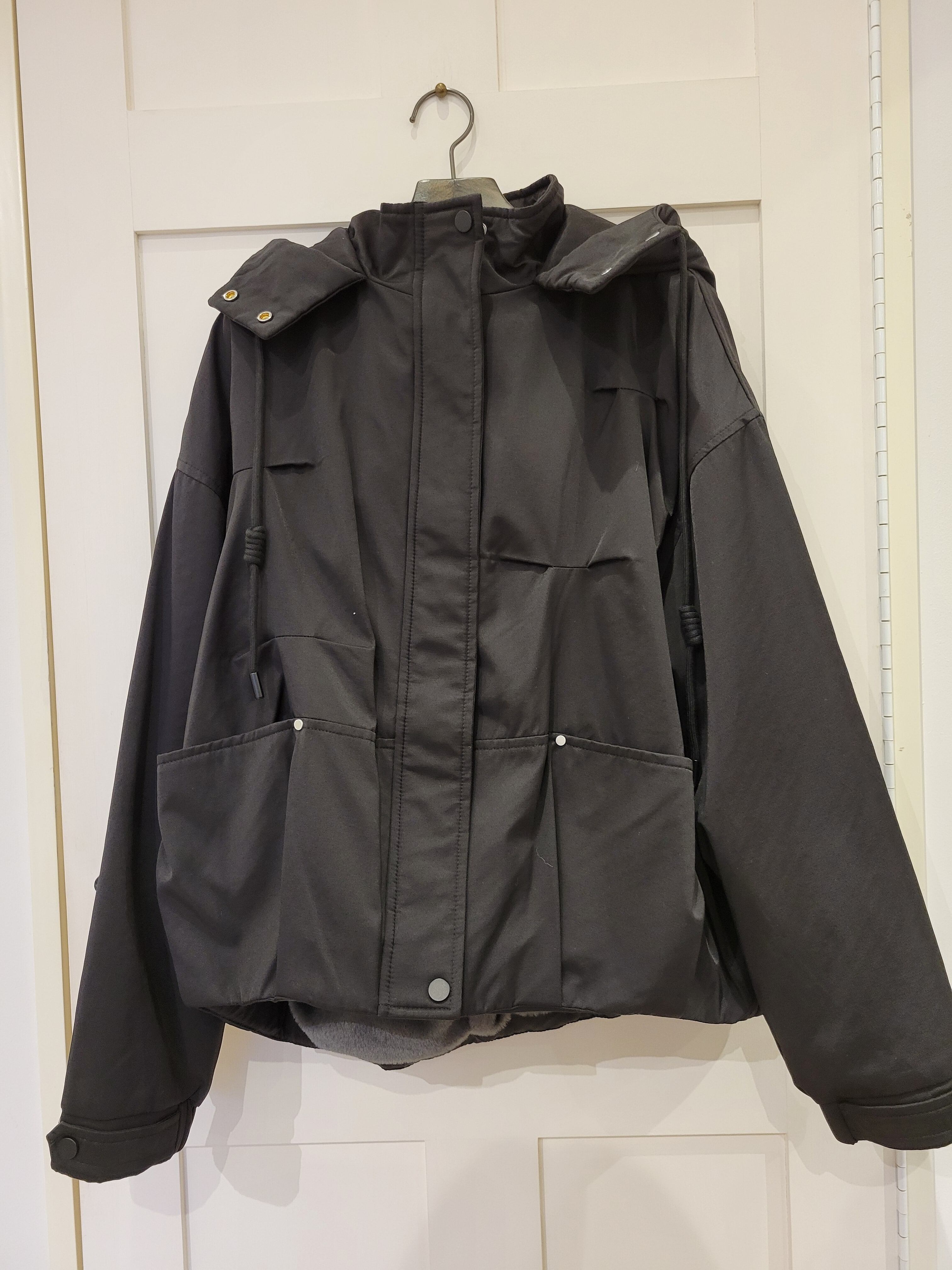 袖口まで続く内側ボアが暖かく、ファスナーを上まで閉めれば、スタンド風フードで、防寒対策バッチリ!