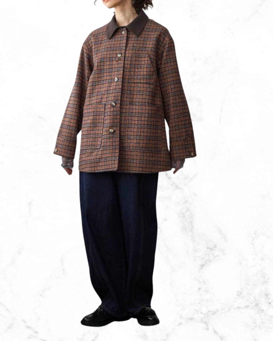 【11/4インスタライブ】チェックミディアムコート 252A3302 ALMOND OIL アーモンドオイル