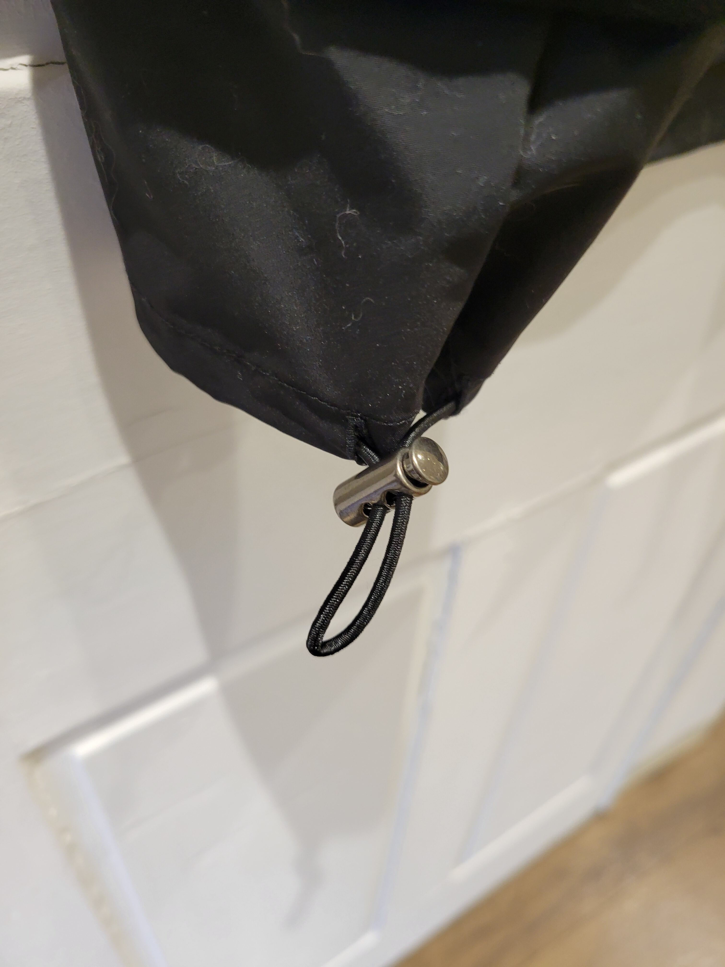 裾のドローストリングを絞ると膨らみを持たせたシルエットになります
