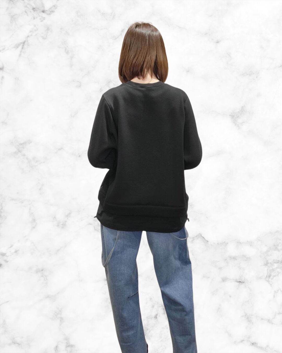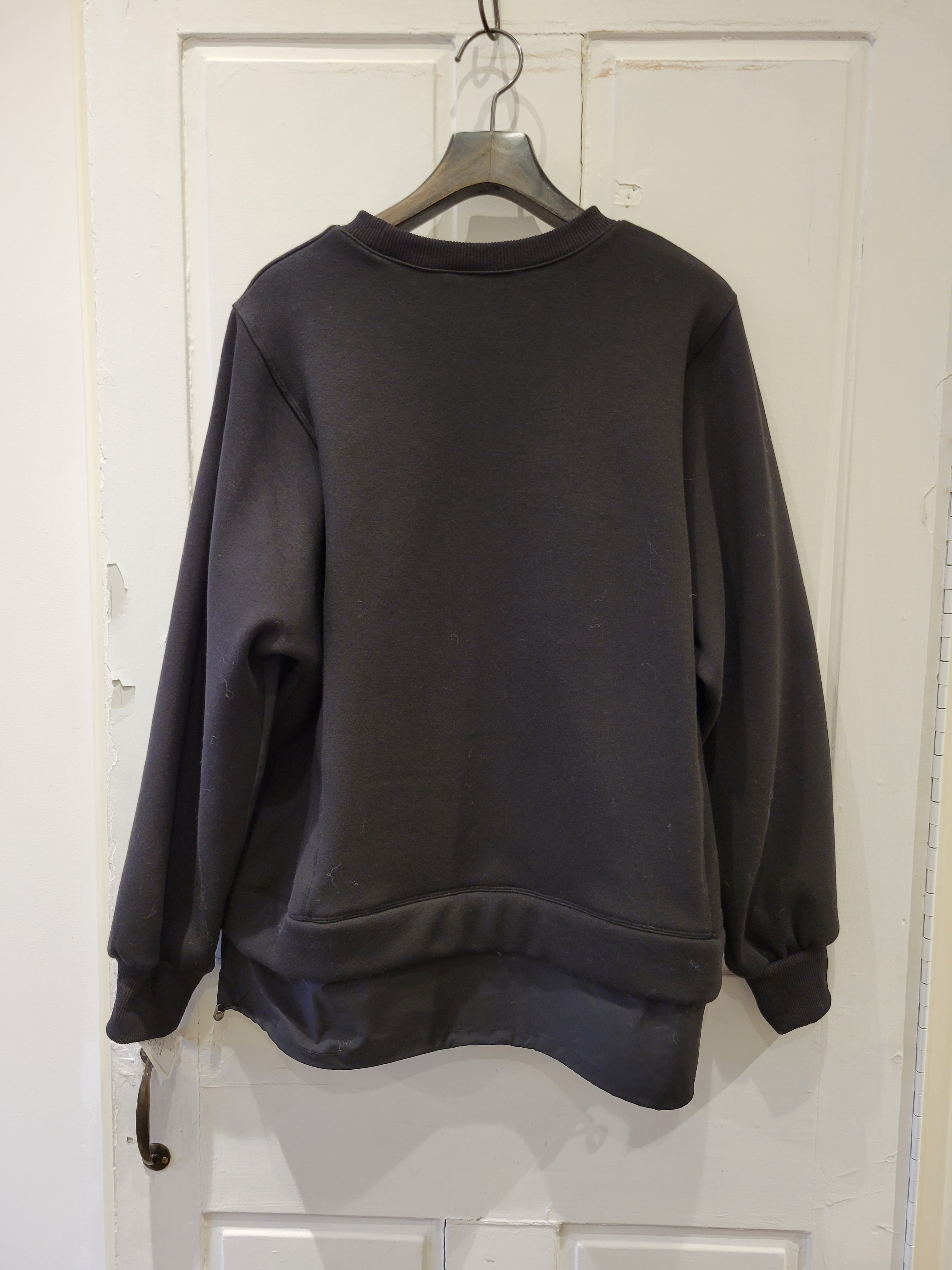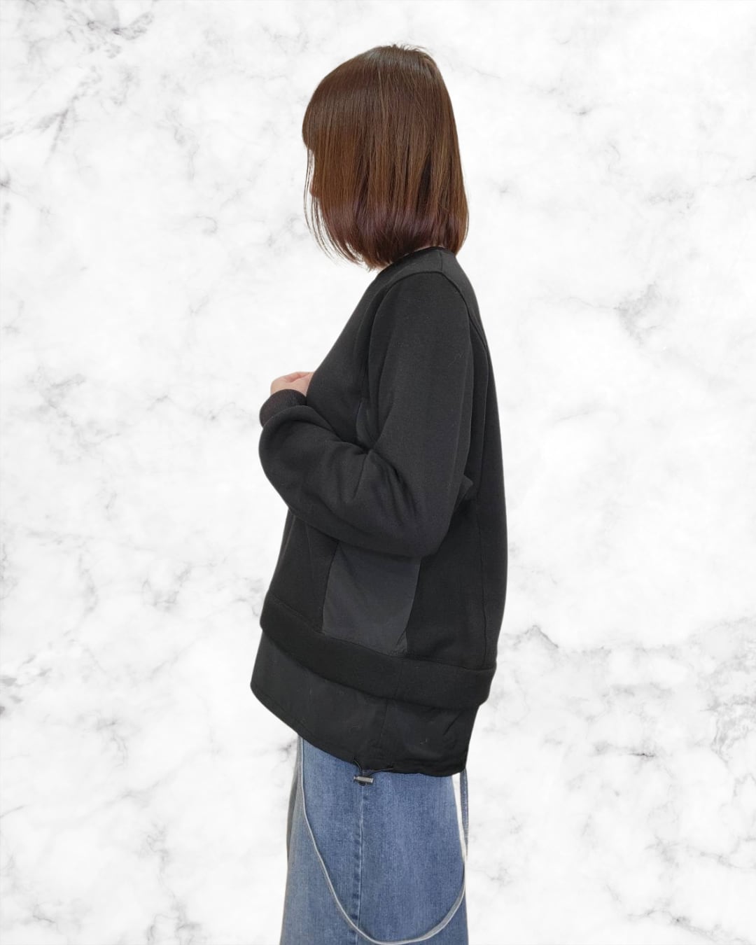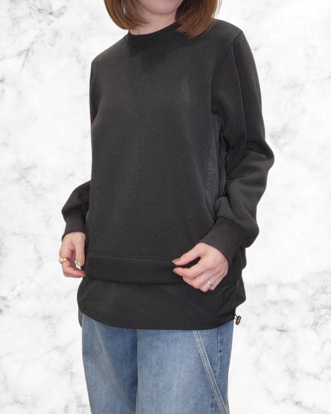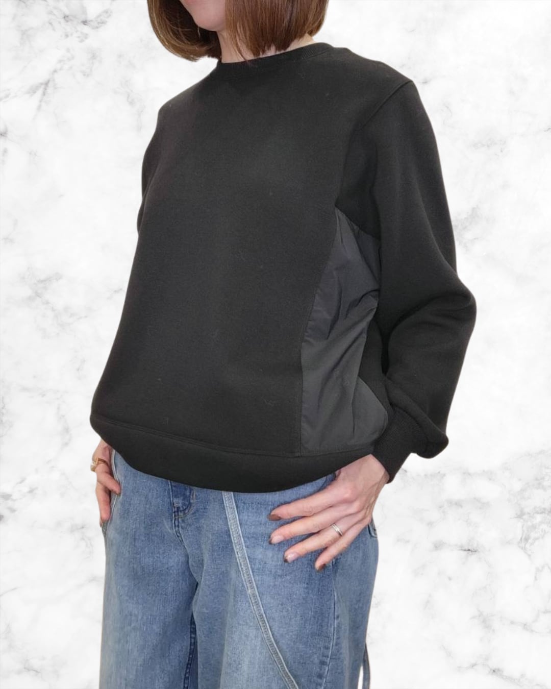 とても暖かな裏地ボアのボンバーヒート素材プルオーバー に、両脇と裾にスムース生地で切り替えを入れデザインアクセントを施した一枚