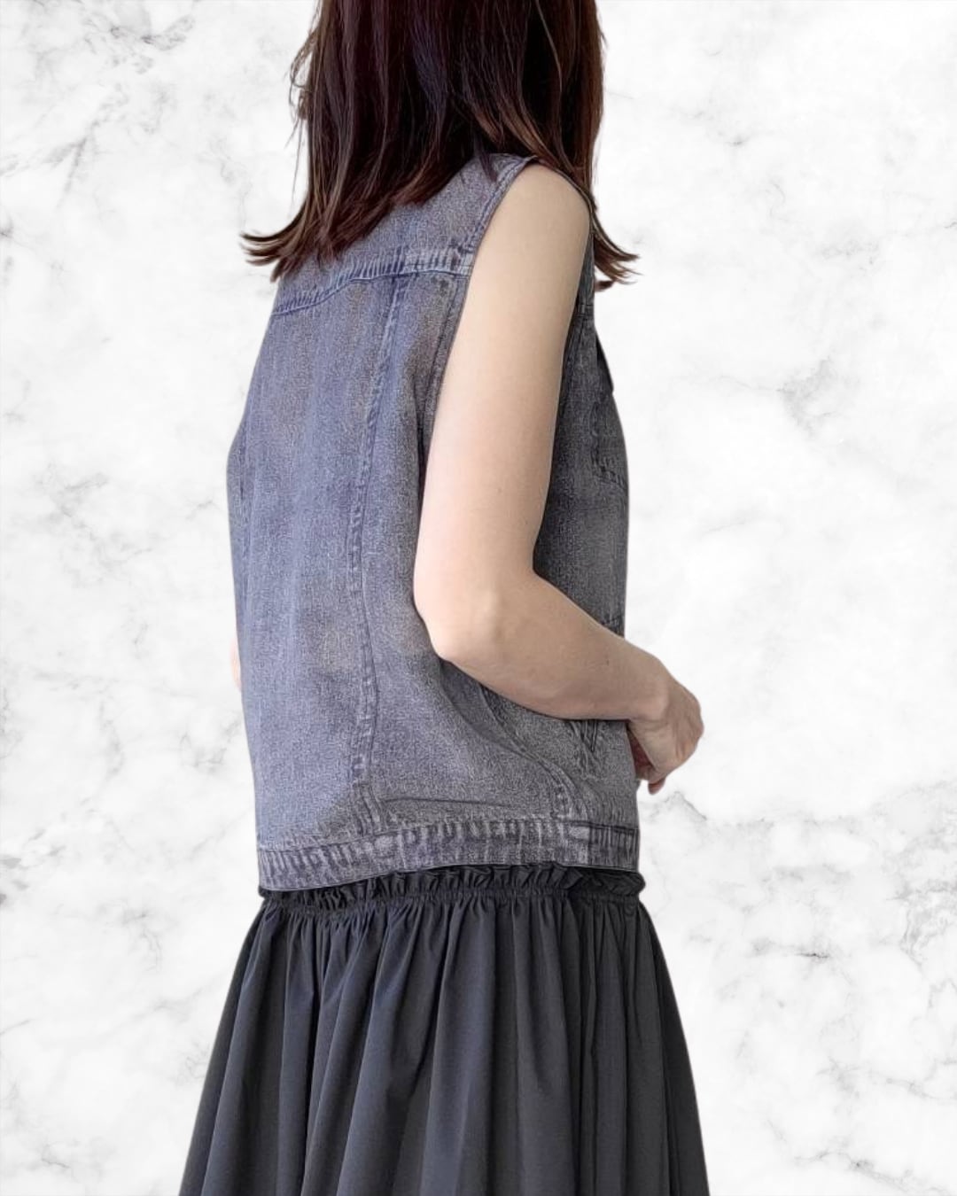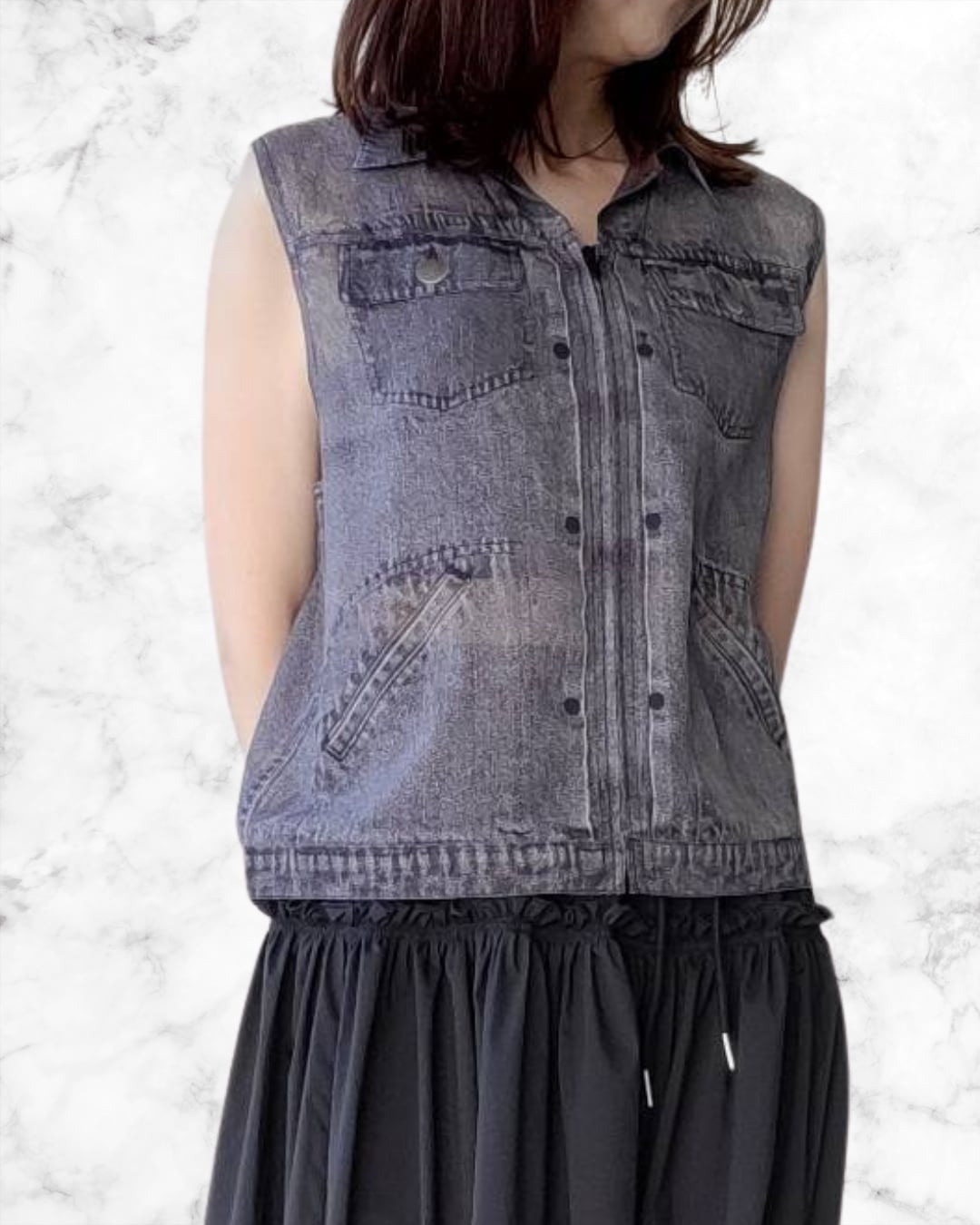 デニム転写シフォンベスト 601463 CYAN TOKYO シアントーキョー 2026年4月下旬入荷予定 1月展示会