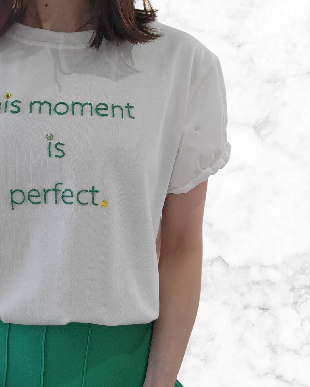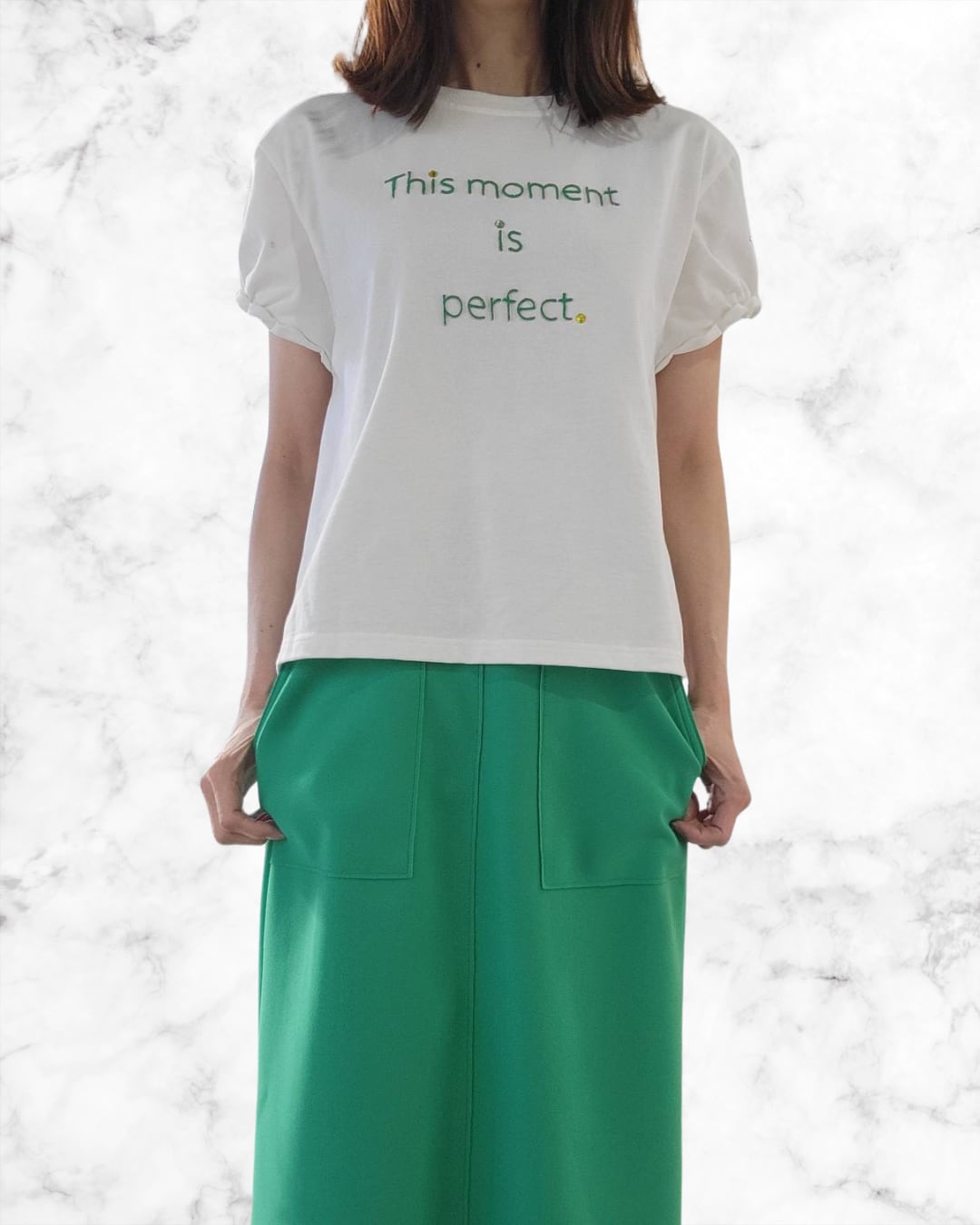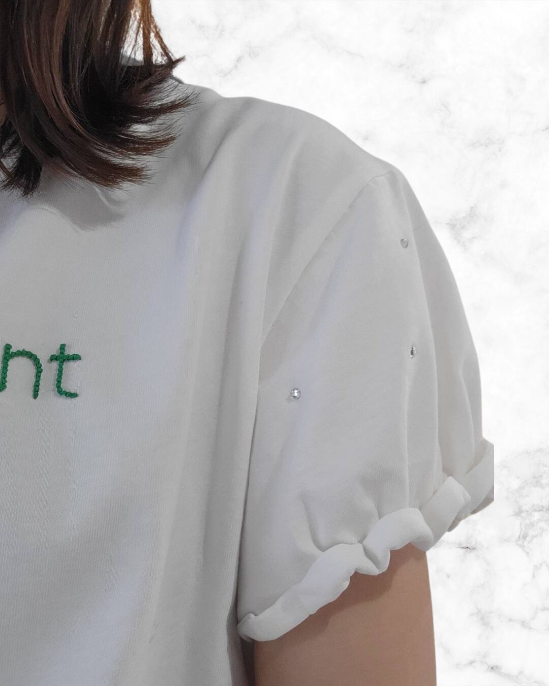 立体感のある胸の刺繍が可愛いロゴTシャツ。
