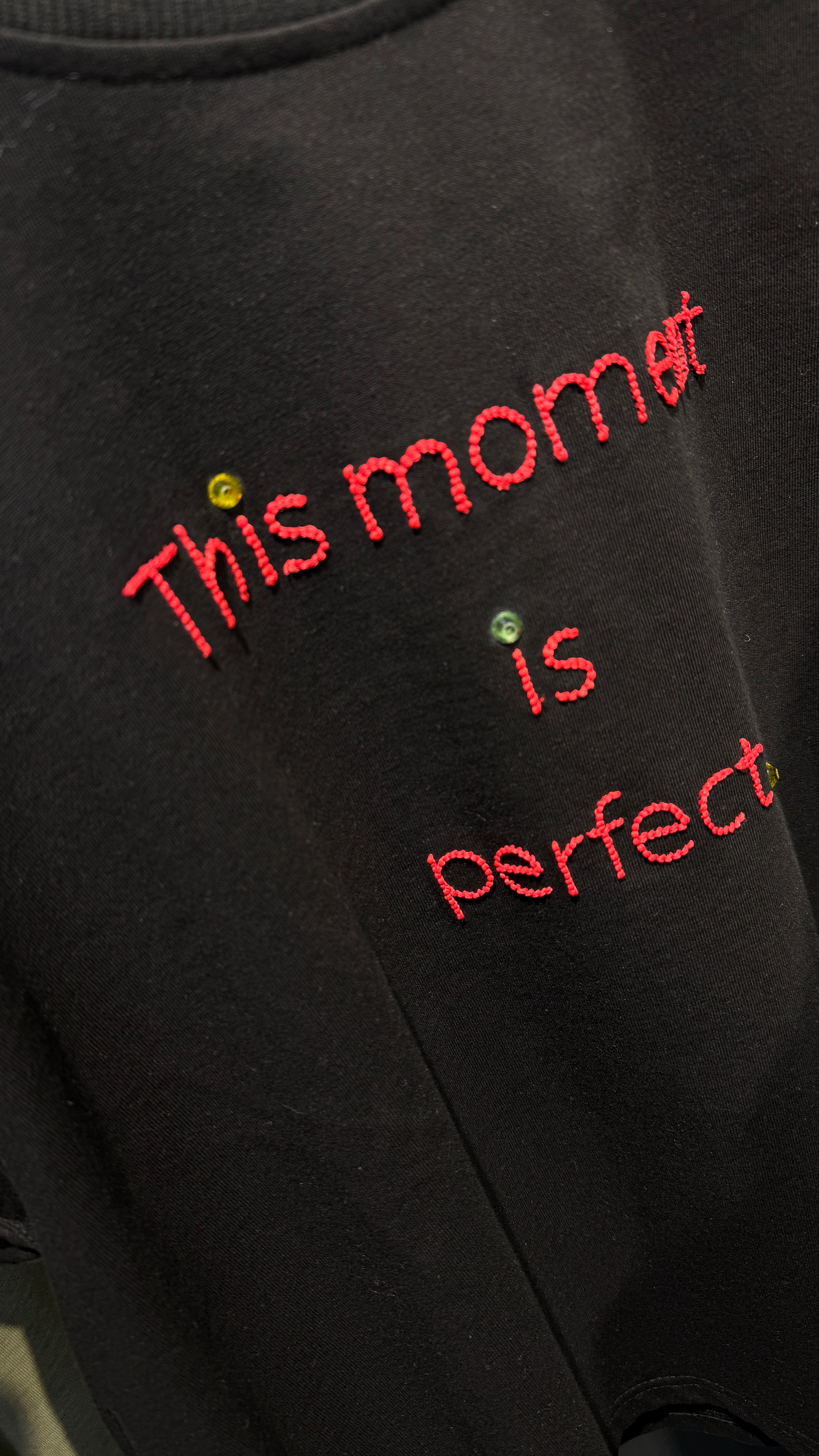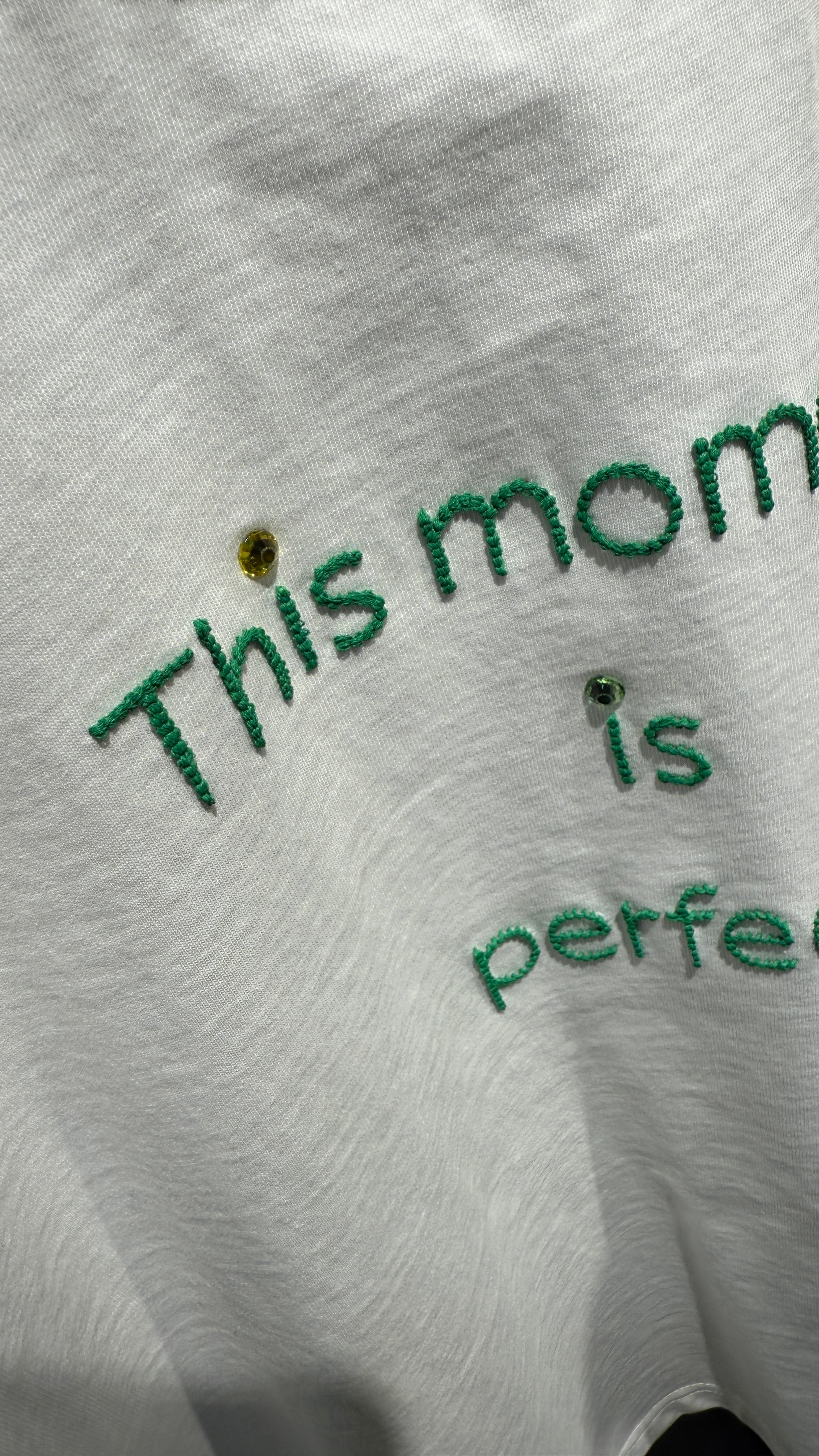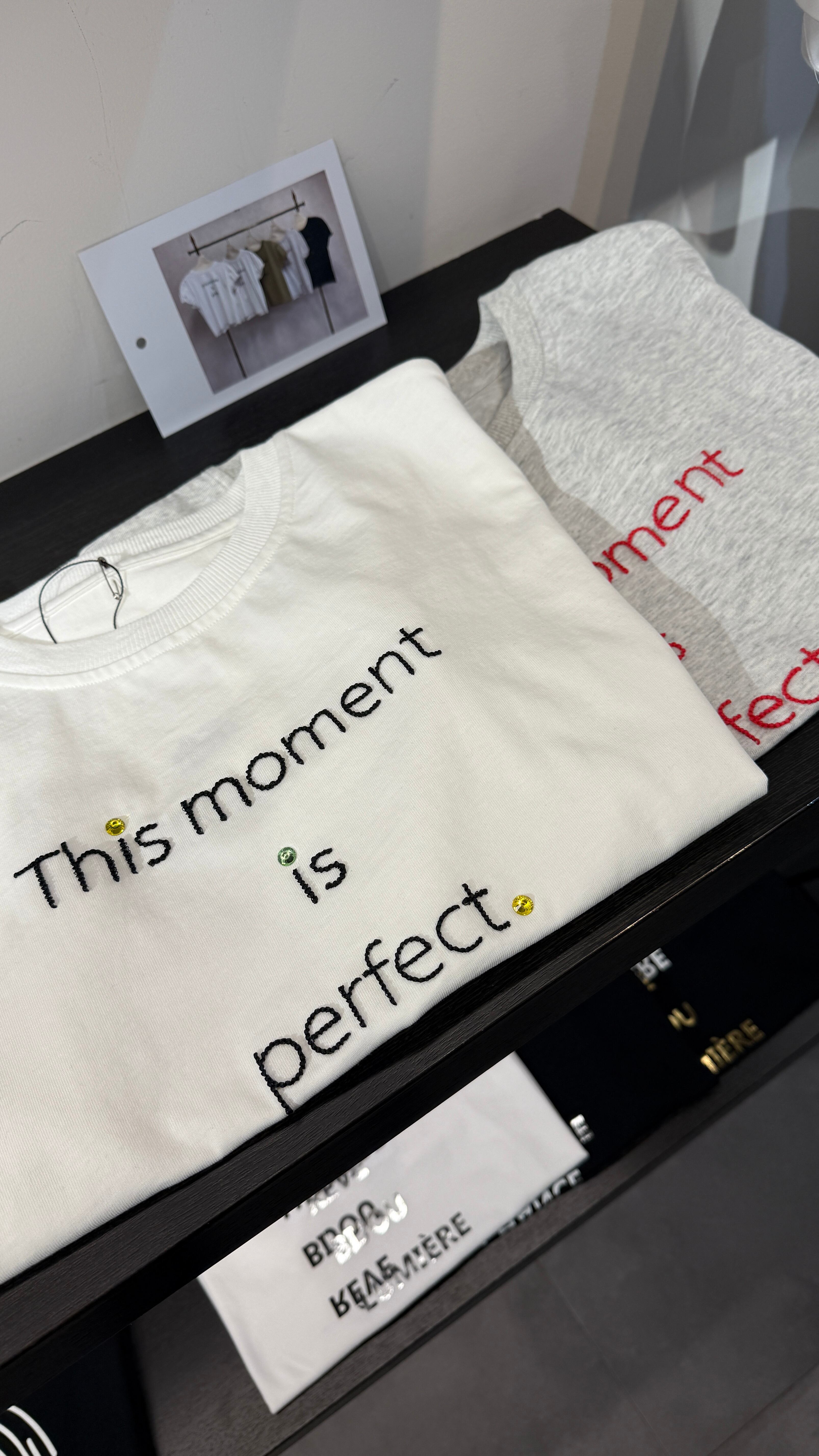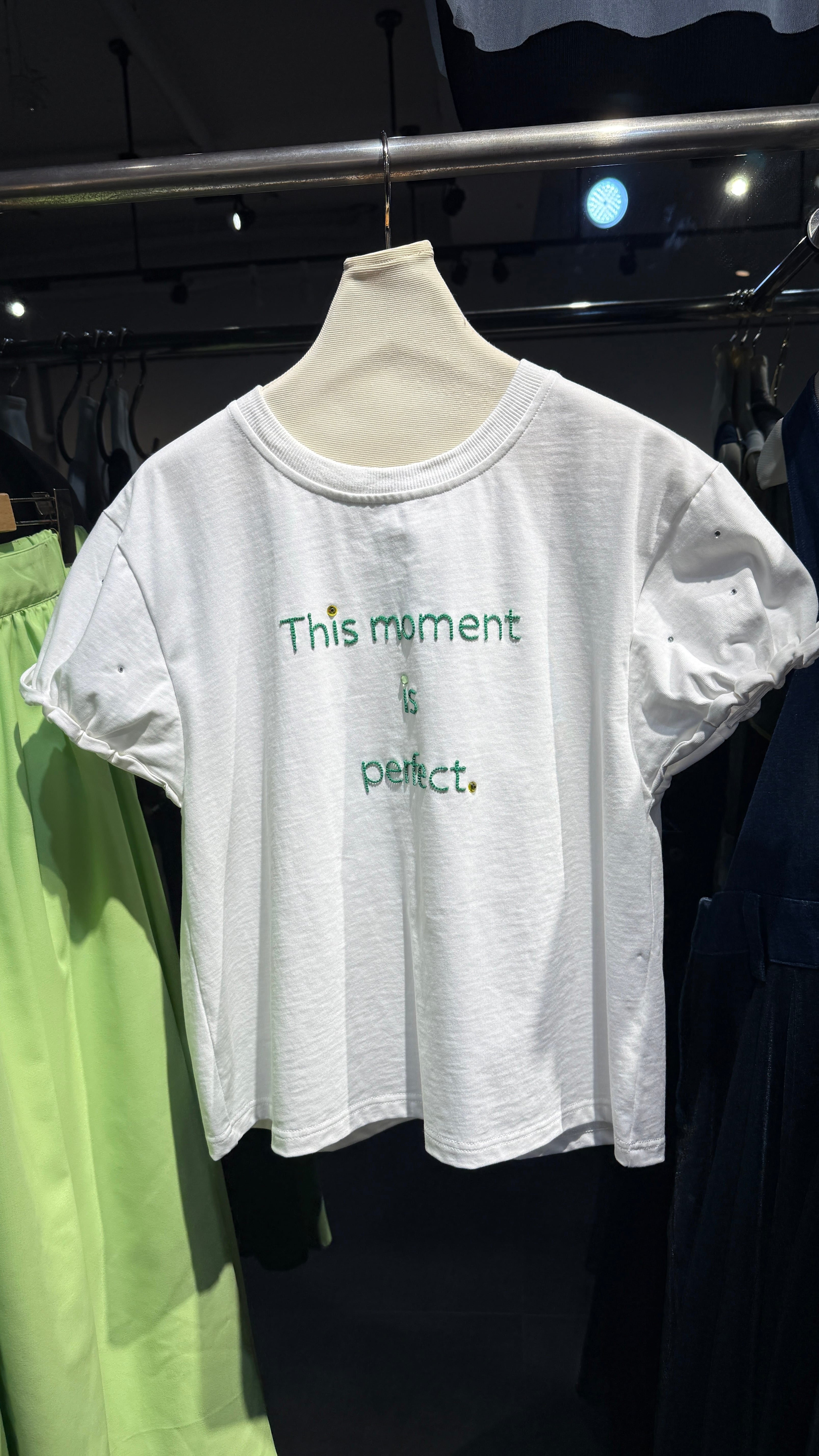 立体感のある胸の刺繍が可愛いロゴTシャツ。