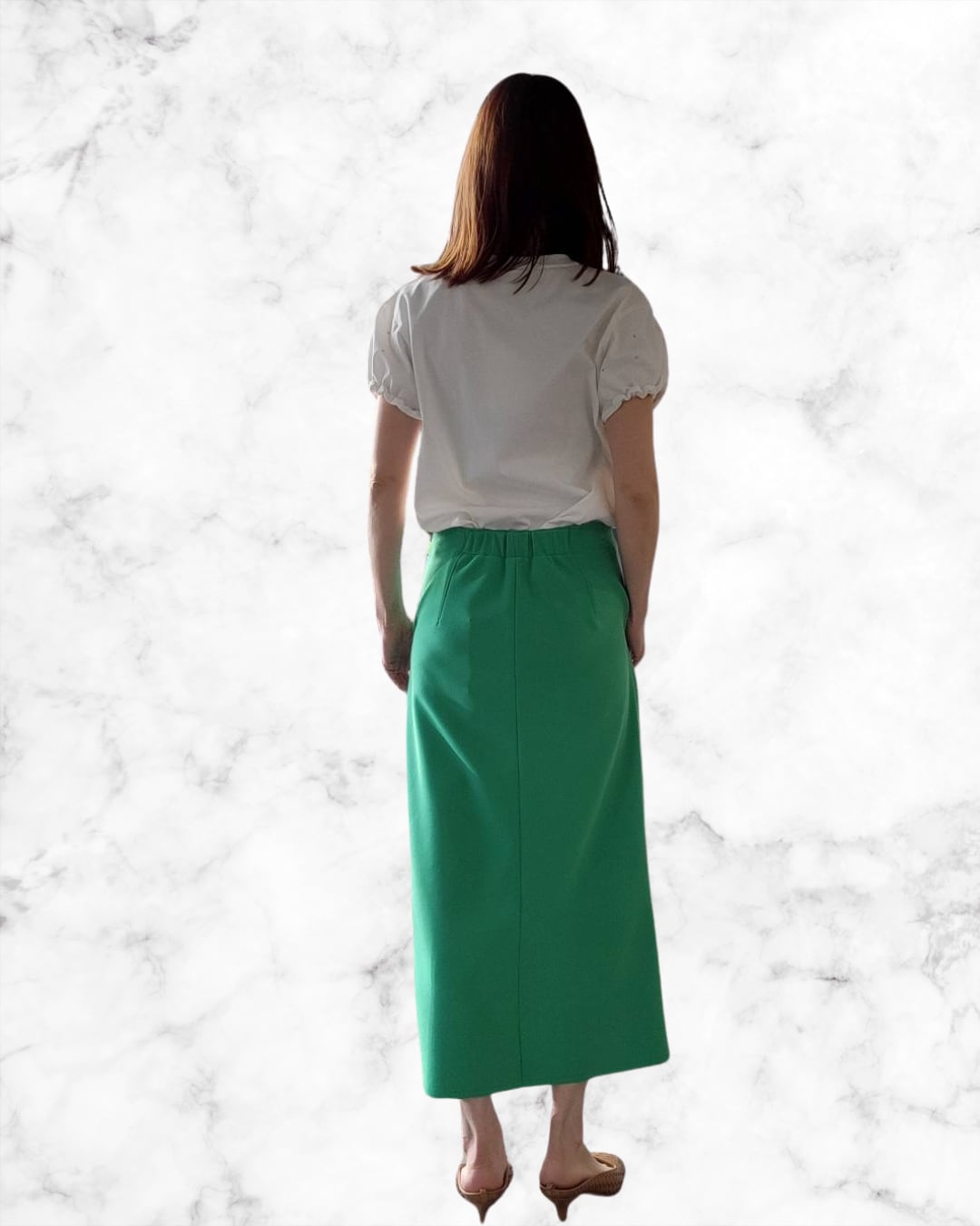 さりげないパフスリーブや、ロゴでも使われているストーンが袖に散りばめられたデザインが大人可愛い一枚です。