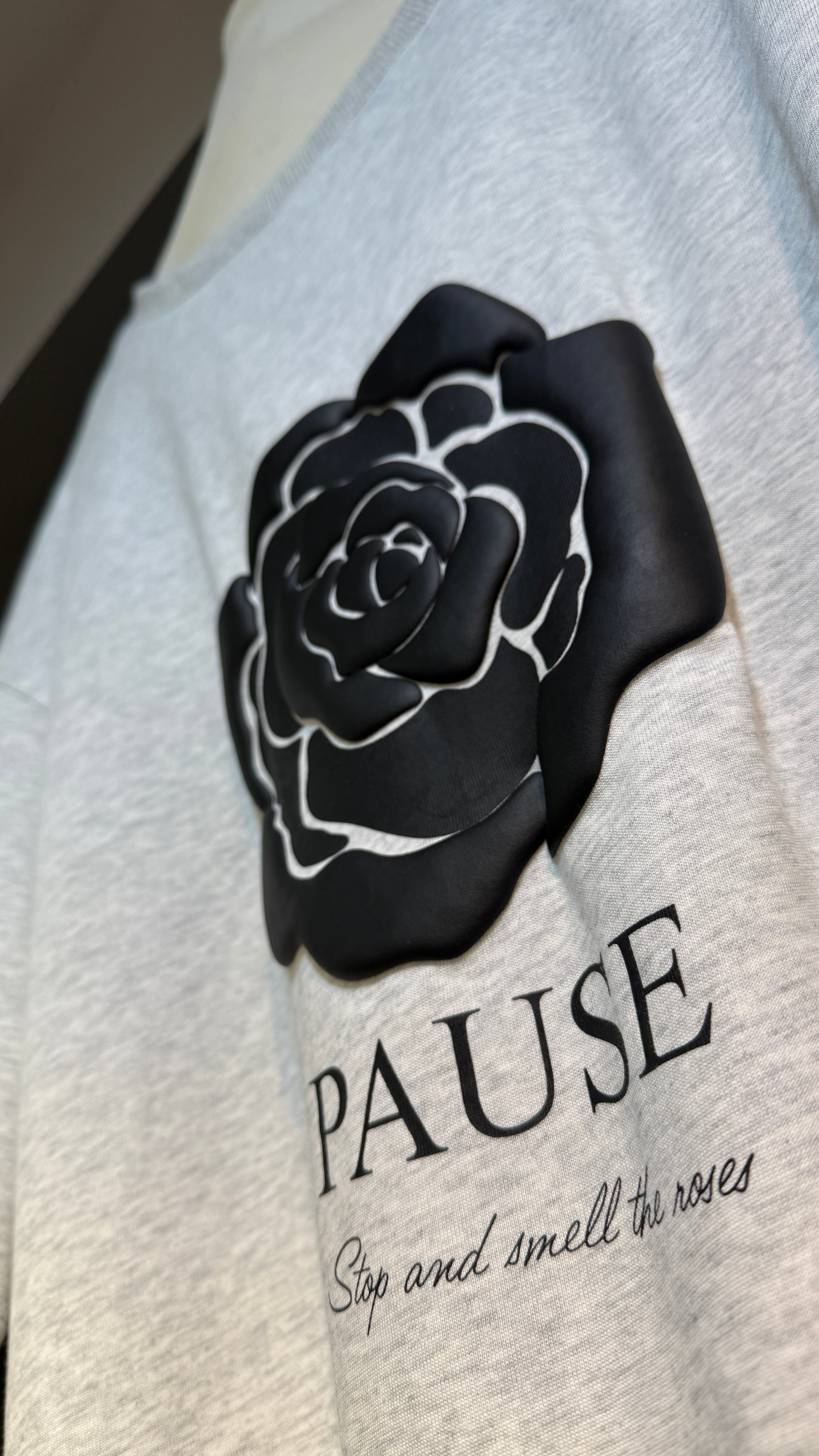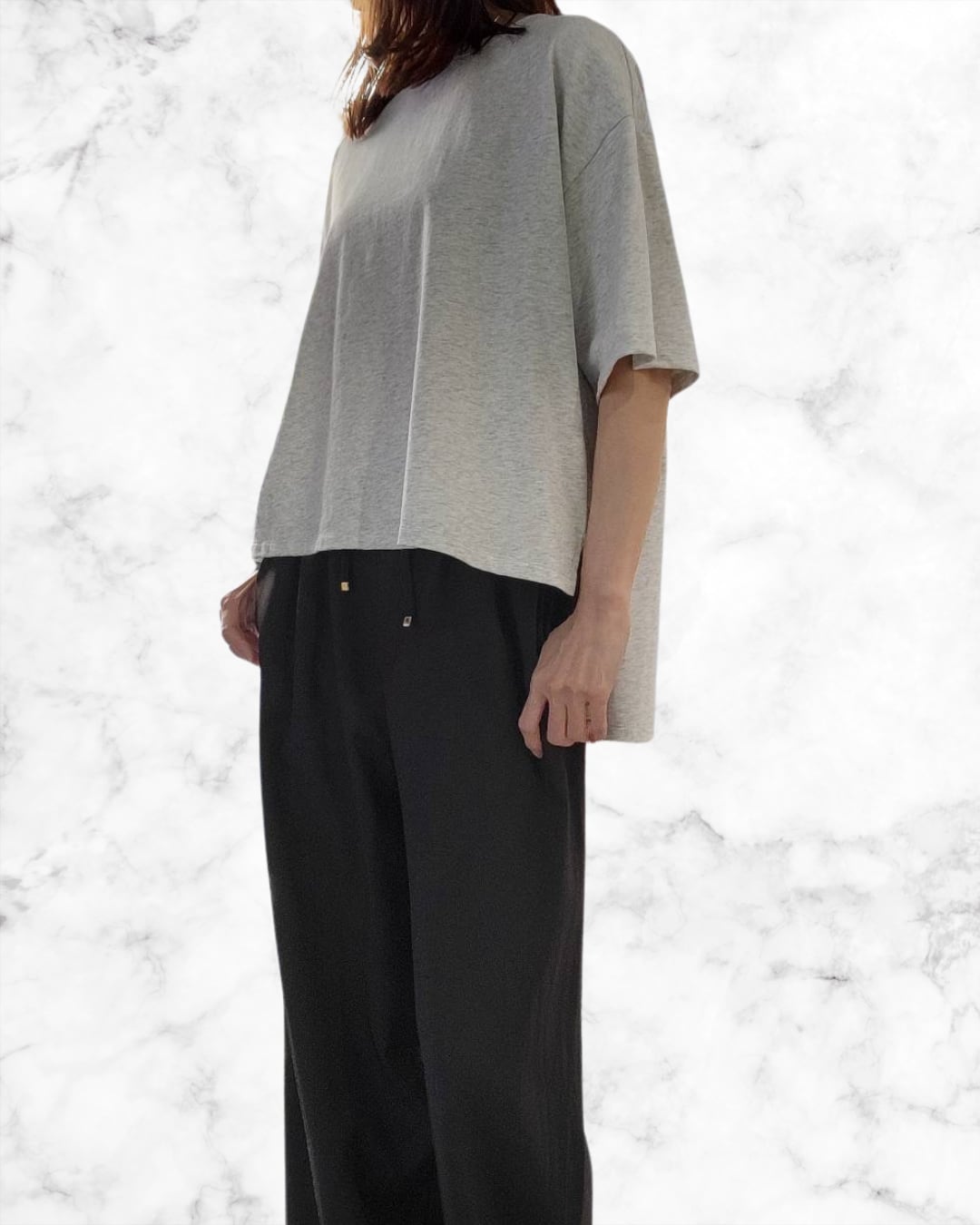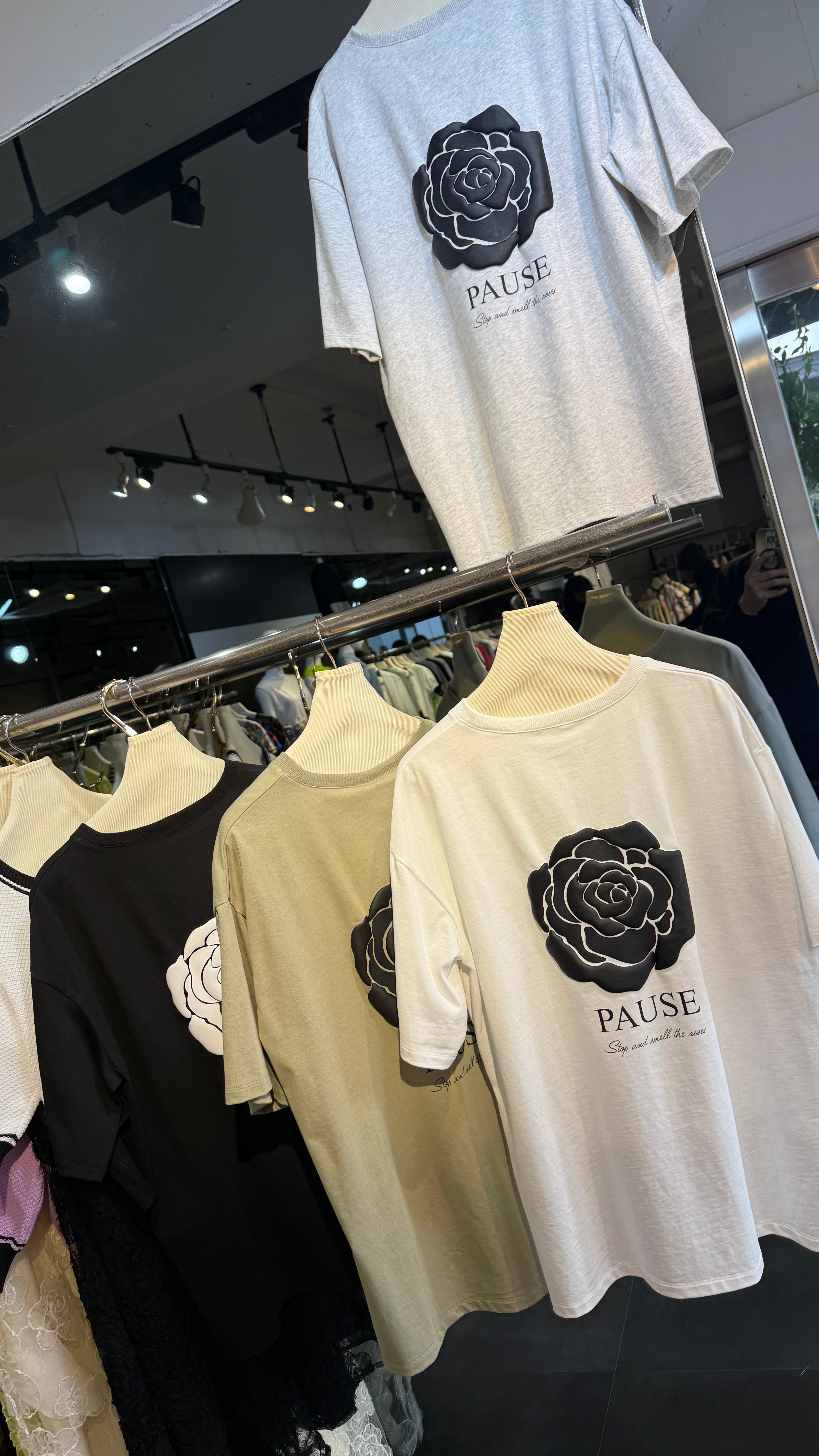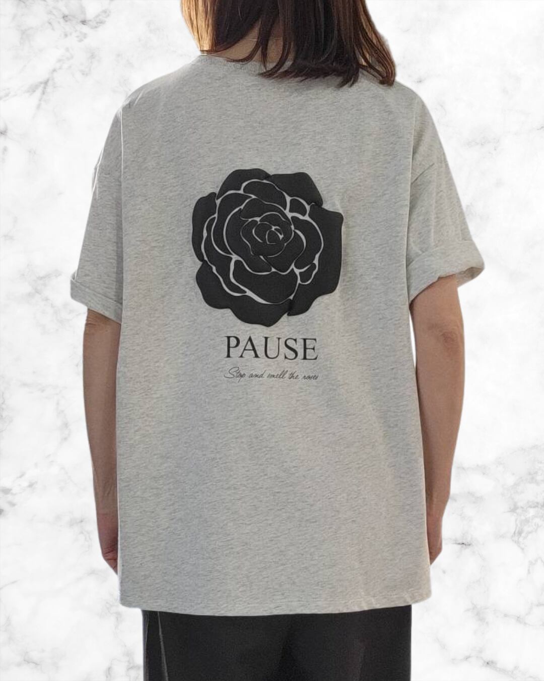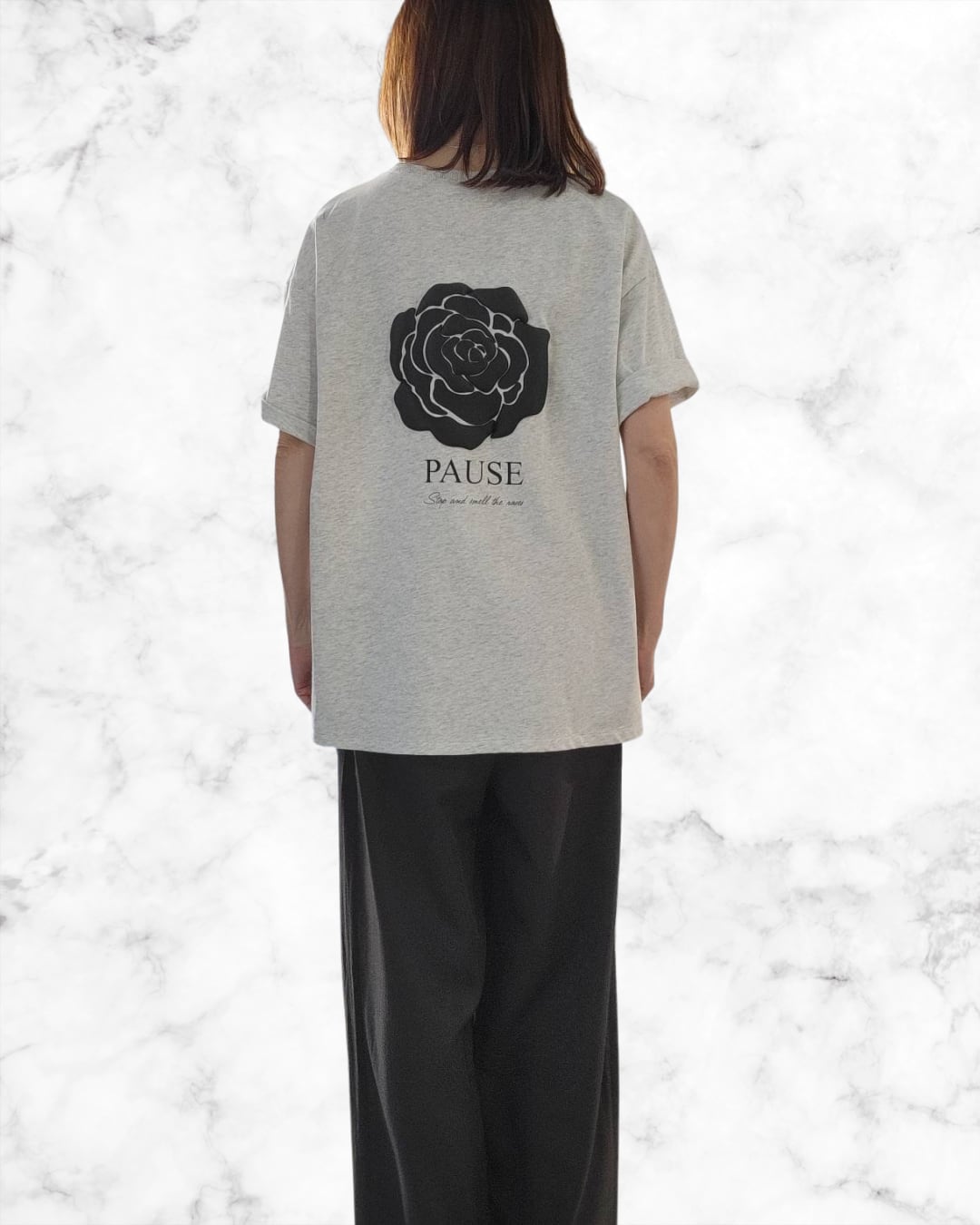 後身頃の立体感あるバラが目を惹くゆったりTシャツ