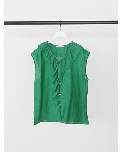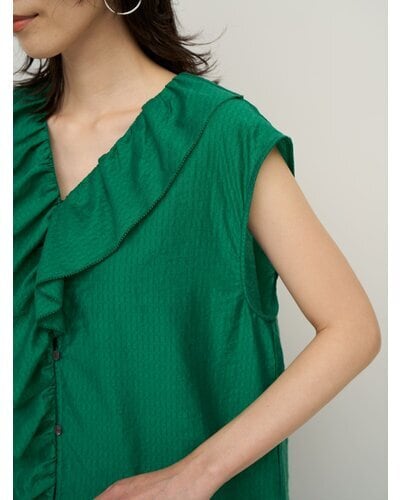 シアー素材にフリルデザインをあしらった、華やかな印象のフリルブラウス。首元にぐるりと入ったフリルが顔まわりを優しく彩り、1枚で着るだけでスタイリングを女性らしく仕上げてくれます。