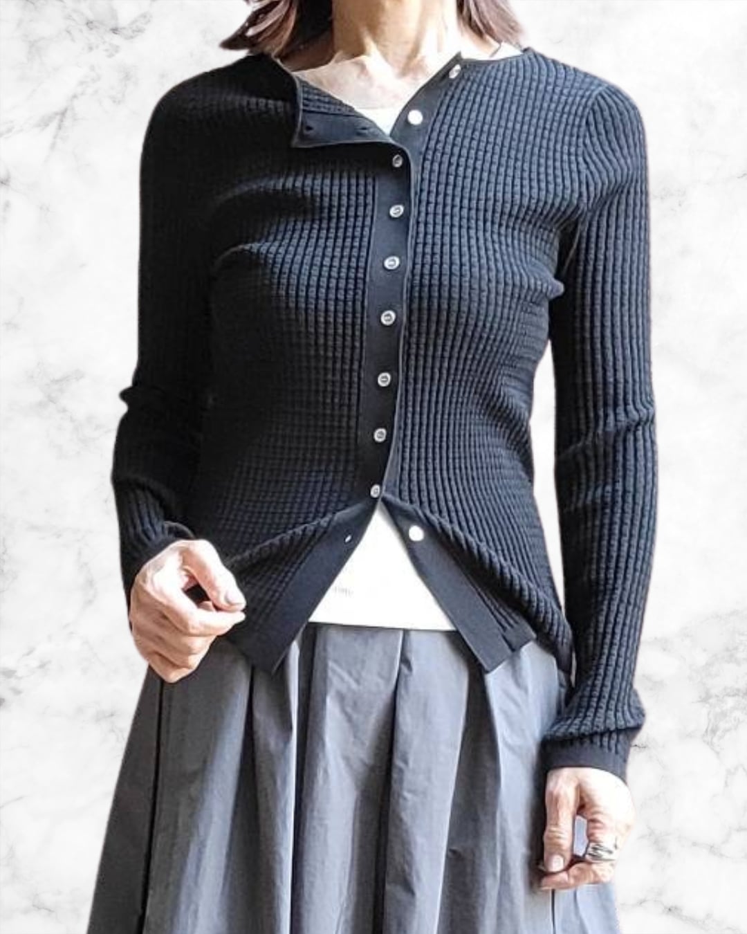 とても柔らかな質感で優しい着心地のリブカーディガン