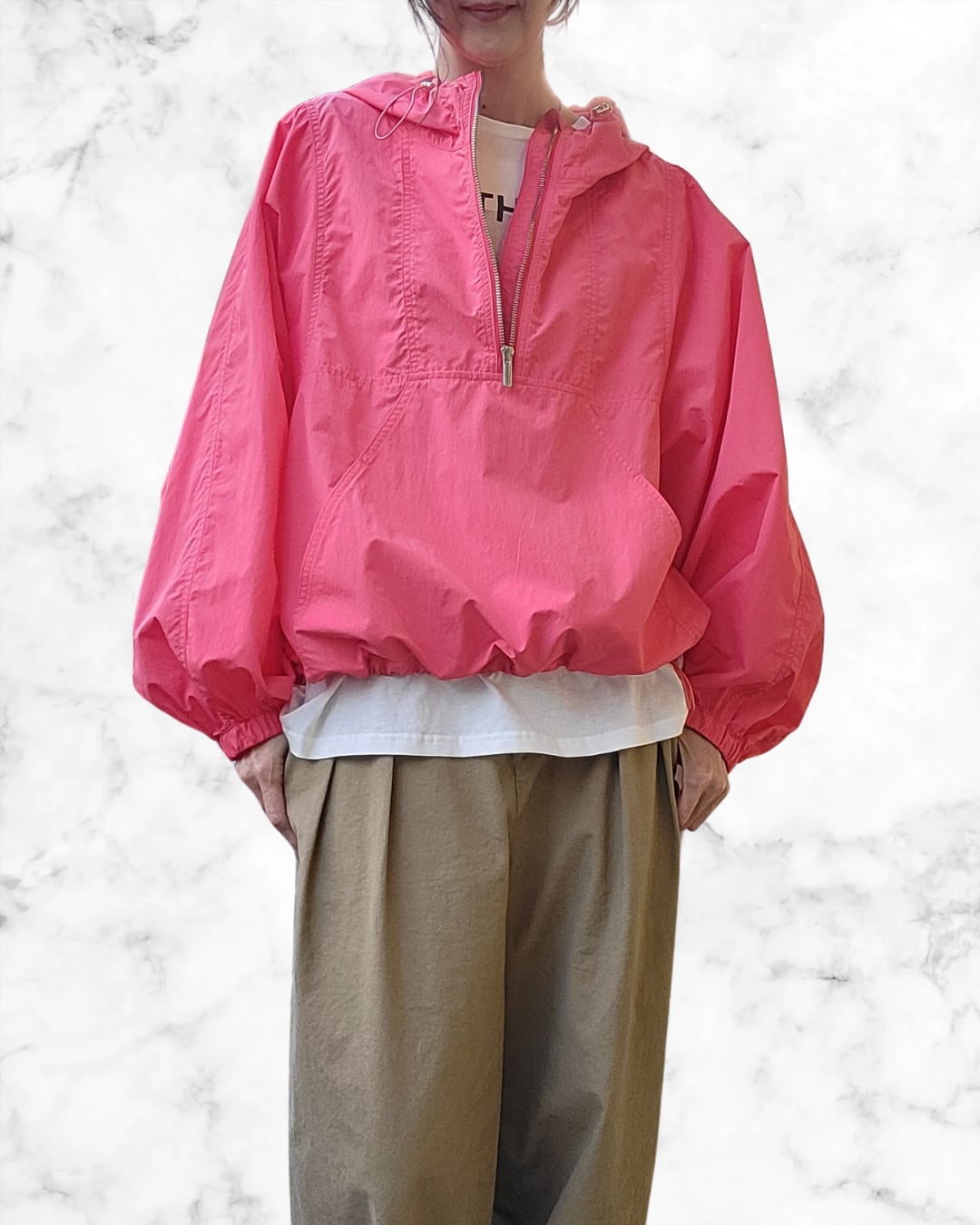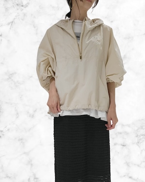 エアリーなナイロン素材で作るドルマンシルエットで、カジュアル過ぎず女性らしくやわらかに仕上げた今季注目のアノラックです。