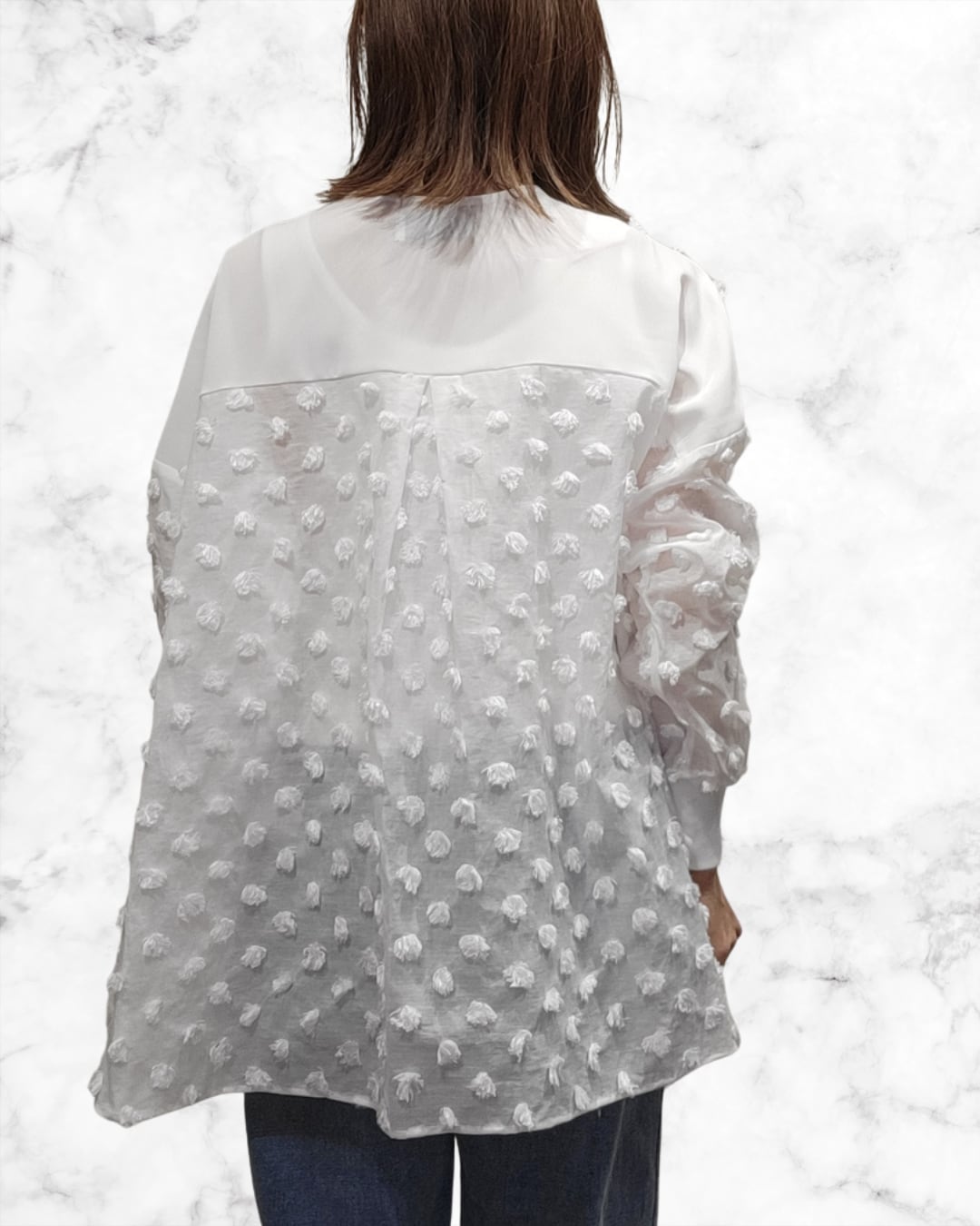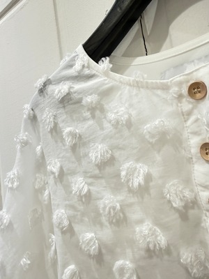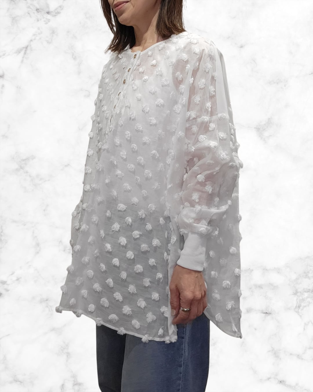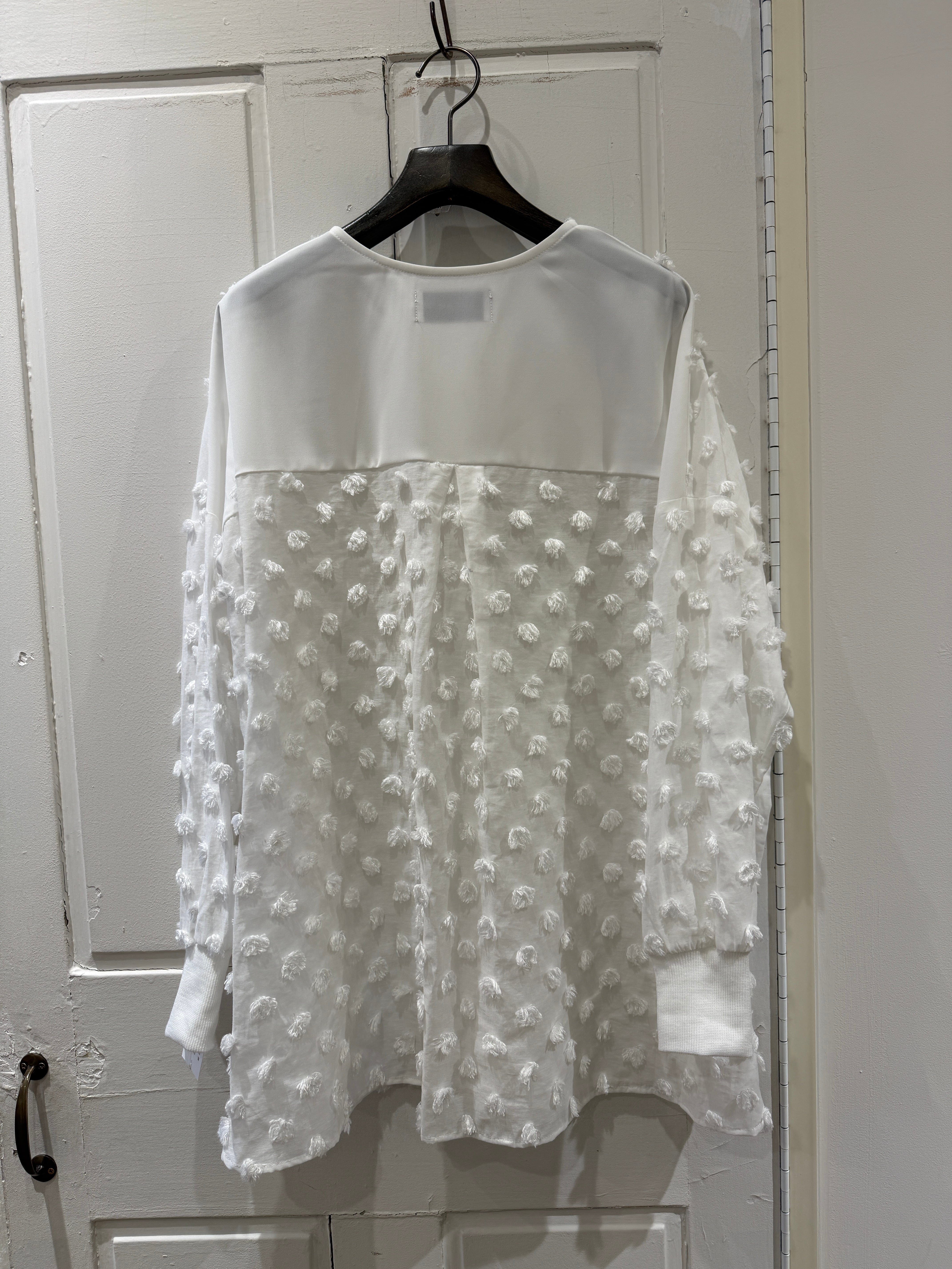 透け感のあるドット柄のヘンリーネックブラウス
