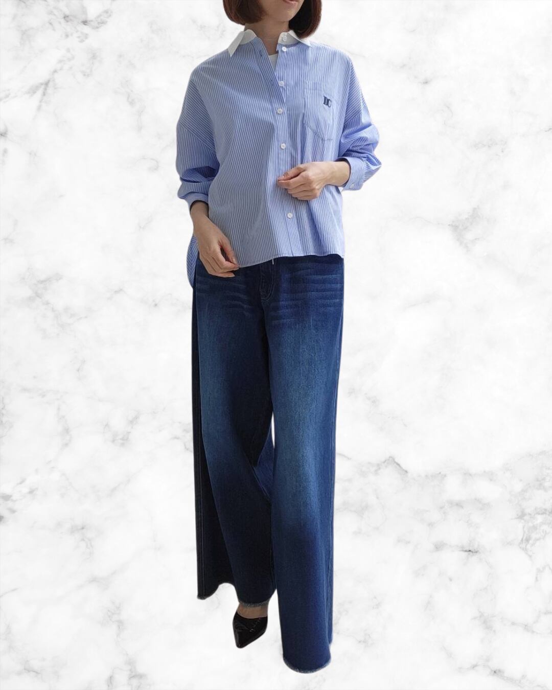 前後差があり前裾インで簡単にこなれた着こなしが完成します