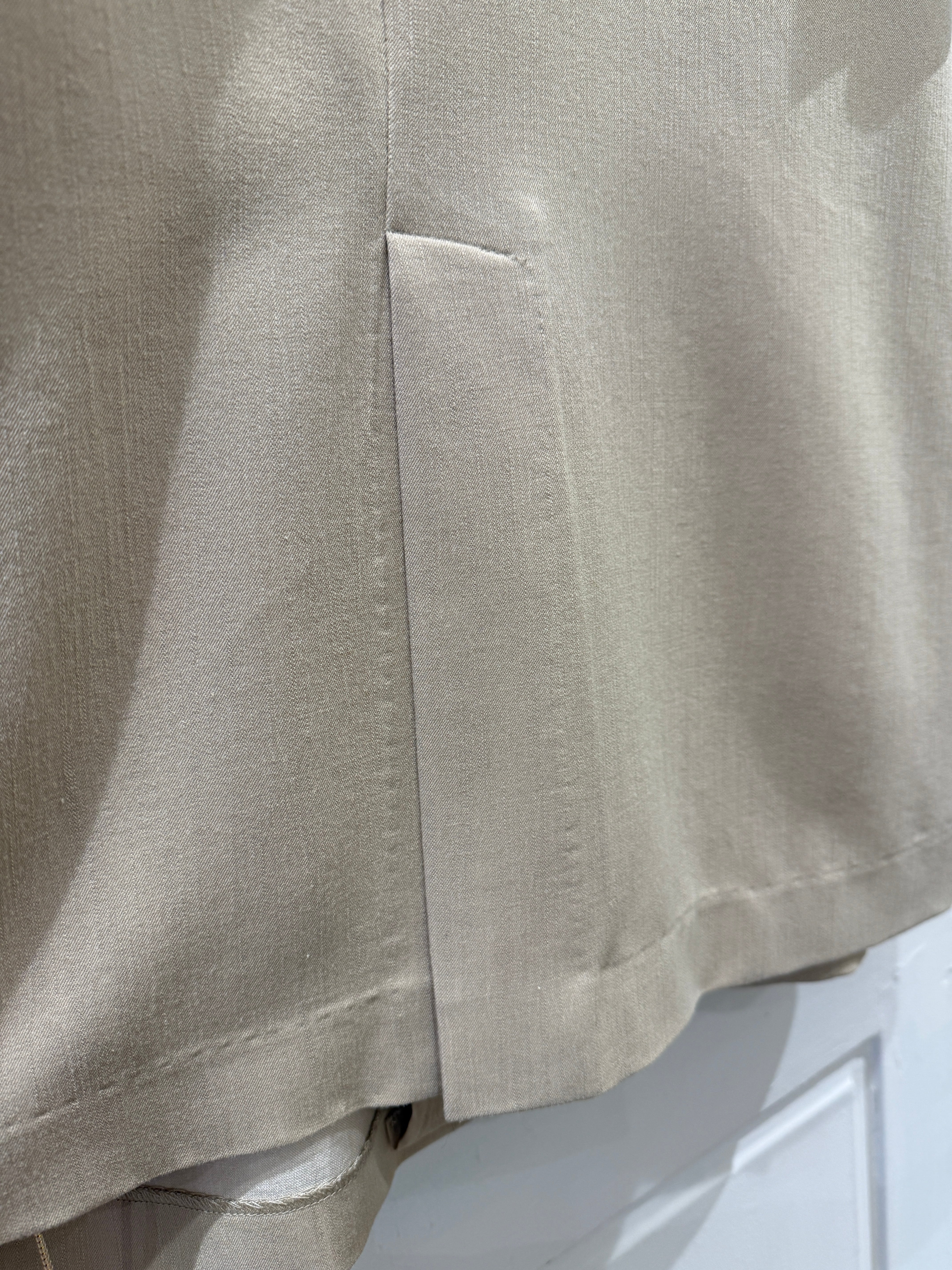 後ろ裾には約20cmのセンターベント(中心切れ込み)が入っており、動きやすいデザインになっています。