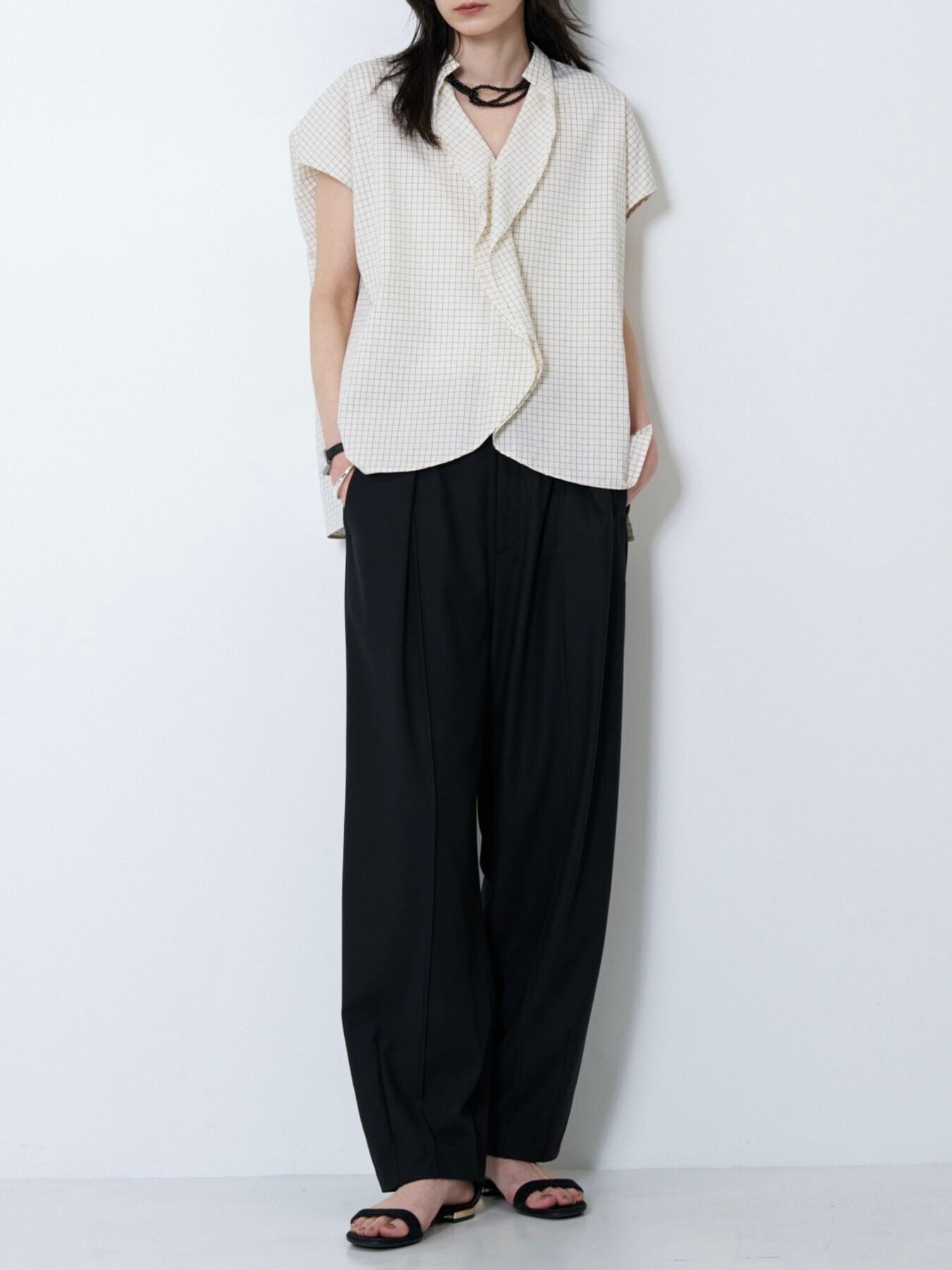 肩をやさしく覆うフレンチスリーブと、立体感あるボックスシルエットで抜け感あるバランスに。