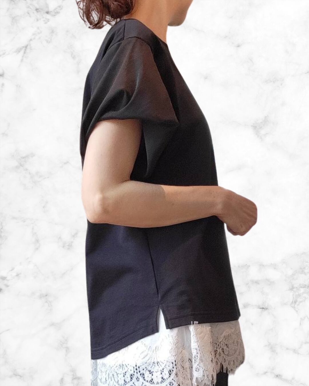袖シフォン切替Tシャツ 80268323 Dignite collier ディニテコリエ 6月上旬入荷予定 4月展示会